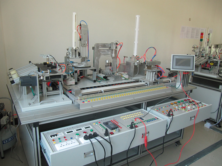機(jī)電一體化技術(shù)實(shí)訓(xùn)設(shè)備是指機(jī)械技術(shù)、電工電子技術(shù)、微電子技術(shù)、信息技術(shù)、傳感器技術(shù)、接口技術(shù)、信號(hào)變換技術(shù)等多種技術(shù)進(jìn)行有機(jī)地結(jié)合,并綜合應(yīng)用到實(shí)際中去的技能實(shí)訓(xùn)綜合技術(shù),現(xiàn)代化的自動(dòng)生產(chǎn)設(shè)備幾乎可以說都是機(jī)電一體化的設(shè)備。自動(dòng)化生產(chǎn)線實(shí)訓(xùn)考核系統(tǒng),可以培養(yǎng)和提高學(xué)生專業(yè)綜合能力,是一種重要的實(shí)訓(xùn)設(shè)備。自動(dòng)化生產(chǎn)線實(shí)訓(xùn)系統(tǒng)、基于PLC技術(shù)的自動(dòng)化生產(chǎn)線實(shí)訓(xùn)考核系統(tǒng),可以培養(yǎng)和提高學(xué)生專業(yè)綜合能力,是一種重要的實(shí)訓(xùn)設(shè)備。自動(dòng)化生產(chǎn)線實(shí)訓(xùn)系統(tǒng)整體包括自動(dòng)供料、檢測(cè)傳輸、檢測(cè)加工、自動(dòng)裝配、自動(dòng)分揀等工序,很好的將機(jī)械技術(shù)、微電子技術(shù)、電工電子技術(shù)、傳感測(cè)試技術(shù)、接口技術(shù)、信息變換技術(shù)、網(wǎng).絡(luò)通信技術(shù)等多種技術(shù)有機(jī)地結(jié)合。該系統(tǒng)中自動(dòng)分揀站的設(shè)計(jì)過程,包括系統(tǒng)硬件設(shè)計(jì)、PLC控制設(shè)計(jì)和程序設(shè)計(jì)方法,F(xiàn)代化的自動(dòng)生產(chǎn)設(shè)備的最大特點(diǎn)是它的綜合性和系統(tǒng)性,在這里,機(jī)械技術(shù)、微電子技術(shù)、電工電子技術(shù)、傳感測(cè)試技術(shù)、接口技術(shù)、信息變換技術(shù)、網(wǎng)絡(luò)通信技術(shù)等多種技術(shù)有機(jī)地結(jié)合,并綜合應(yīng)用到生產(chǎn)設(shè)備中:而系統(tǒng)性指的是,生產(chǎn)線的傳感檢測(cè)、傳輸與處理、控制、執(zhí)行與驅(qū)動(dòng)等機(jī)構(gòu)在微處理單元的控制下協(xié)調(diào)有序地工作,有機(jī)地融合在一起。可編程序控制器(PLC)以其高抗干擾能力、高可靠性、高性能價(jià)格比且編程簡(jiǎn)單而廣泛地應(yīng)用在現(xiàn)代化的自動(dòng)生產(chǎn)設(shè)備中,擔(dān)負(fù)著生產(chǎn)線的大腦一微 處理單元的角色。因此,培養(yǎng)掌握機(jī)電一體化技術(shù),掌握PLC技術(shù)及PLC網(wǎng)絡(luò)技術(shù)的技術(shù)人材是當(dāng)務(wù)之急。而一套基于PLC技術(shù)的自動(dòng)化生產(chǎn)線實(shí)訓(xùn)考核設(shè)備可以模擬一個(gè)與實(shí)際生產(chǎn)情況+分接近的控制過程,使學(xué)習(xí)者得到一個(gè)非常接近于實(shí)際的教學(xué)設(shè)備環(huán)境,從而縮短了理論教學(xué)與實(shí)際應(yīng)用之間的距離。自動(dòng)分揀站需完成對(duì)上一單元送來的已加工、裝配的工件進(jìn)行分揀。使不同顏色的工件從不同的料槽分流的功能。當(dāng)輸送站送來工件放到傳送帶上并為入料口光電傳感器檢測(cè)到時(shí),即啟動(dòng)變頻器,工件開始送入分揀區(qū)進(jìn)行分揀。上海碩博弘揚(yáng)大國(guó)工匠精神, 發(fā)展職業(yè)教育,應(yīng)用教學(xué)設(shè)備,為企業(yè)培養(yǎng)高技能人才,而專業(yè)生產(chǎn):光機(jī)電一體化(自動(dòng)生產(chǎn)線)實(shí)訓(xùn)裝置、灌裝自動(dòng)化生產(chǎn)線實(shí)訓(xùn)裝置、工業(yè)自動(dòng)生產(chǎn)線實(shí)訓(xùn)裝置 、工業(yè)控制模擬實(shí)訓(xùn)裝置 、機(jī)電一體化組合實(shí)訓(xùn)平臺(tái) 、機(jī)電一體化綜合實(shí)訓(xùn)考核裝置、自動(dòng)化生產(chǎn)安裝與調(diào)試實(shí)訓(xùn)裝置 、光機(jī)電一體化高速分揀實(shí)訓(xùn)系統(tǒng) 、典型機(jī)電設(shè)備安裝與控制實(shí)訓(xùn)裝置、模塊式柔性自動(dòng)環(huán)形生產(chǎn)線實(shí)驗(yàn)系統(tǒng)(帶機(jī)器人工程型)、立體停車庫實(shí)物教學(xué)實(shí)驗(yàn)裝置、機(jī)電一體化柔性生產(chǎn)線加工實(shí)訓(xùn)系統(tǒng)(5站)、網(wǎng)絡(luò)型模塊式柔性自動(dòng)化生產(chǎn)線實(shí)驗(yàn)系統(tǒng)、模塊式柔性自動(dòng)環(huán)形生產(chǎn)線實(shí)驗(yàn)系統(tǒng)(工程型)、柔性生產(chǎn)制造實(shí)驗(yàn)系統(tǒng)(工程型)、現(xiàn)代物流倉(cāng)儲(chǔ)自動(dòng)化實(shí)驗(yàn)系統(tǒng)、運(yùn)動(dòng)實(shí)訓(xùn)裝置、循環(huán)搬運(yùn)自動(dòng)控制實(shí)訓(xùn)裝置、平面雙軸運(yùn)行控制實(shí)訓(xùn)裝置、工業(yè)機(jī)械手實(shí)訓(xùn)裝置、物料分揀實(shí)訓(xùn)裝置、機(jī)械手實(shí)訓(xùn)裝置 、立體倉(cāng)庫實(shí)訓(xùn)裝置、十字路口交通燈實(shí)訓(xùn)系統(tǒng)、機(jī)電液氣一體化綜合實(shí)訓(xùn)裝置、光機(jī)電一體化高速分揀實(shí)訓(xùn)系統(tǒng)、步進(jìn)伺服控制綜合實(shí)訓(xùn)平臺(tái)、光機(jī)電氣一體化控制實(shí)訓(xùn)系統(tǒng)、 光機(jī)電一體化綜合實(shí)訓(xùn)考核裝置、光機(jī)電一體化實(shí)訓(xùn)考核裝置、光機(jī)電一體化實(shí)訓(xùn)考核裝置、光機(jī)電氣一體化控制實(shí)訓(xùn)系統(tǒng)、自動(dòng)生產(chǎn)線拆裝與調(diào)試實(shí)訓(xùn)裝置、柔性自動(dòng)化生產(chǎn)線實(shí)訓(xùn)系統(tǒng)。