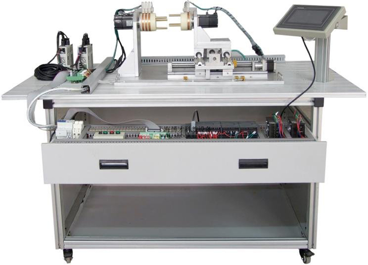 1.機構部分:包括實訓桌、工業(yè)鋁型材、抽屜、二軸旋轉模型(含精密滾珠絲桿、主軸同步機構、檢測傳感器、限位開關)等組成。