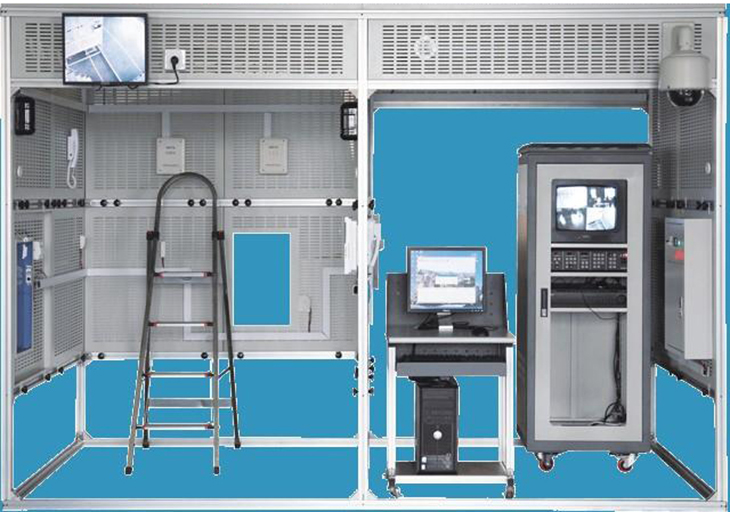 建筑模型由標(biāo)準(zhǔn)規(guī)格的鋁合金工業(yè)型材和網(wǎng)孔式安裝板組成,設(shè)有總電源箱。建筑模型分為智能大樓(小區(qū))和管理中心兩部分,安保區(qū)域設(shè)有單元門(mén)和單戶(hù)窗,實(shí)現(xiàn)智能小區(qū)對(duì)講門(mén)禁系統(tǒng)的設(shè)備安裝、智能大樓室內(nèi)安防系統(tǒng)的設(shè)備安裝等工程訓(xùn)練,實(shí)現(xiàn)單元和單戶(hù)可視對(duì)講功能。