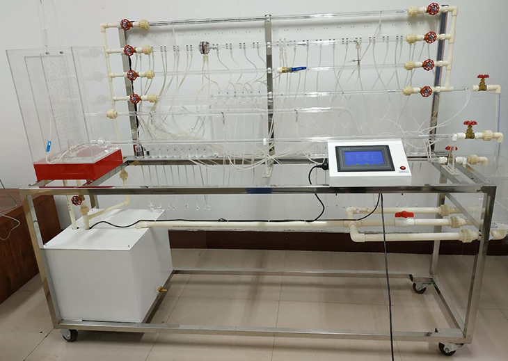 移動(dòng)式不銹鋼實(shí)驗(yàn)臺(tái)、儲(chǔ)水箱;雷諾測(cè)試管;伯努利測(cè)試管;沿程阻力系數(shù)測(cè)試管;突擴(kuò)、突縮測(cè)試管;閥門局部阻力系數(shù)測(cè)試管;孔板流量計(jì)測(cè)試管;文丘里流量計(jì)測(cè)試管;和皮托管測(cè)試管;測(cè)壓板直接顯示總水頭線和測(cè)壓管水頭線;壓力傳感器24套、流量傳感器4套、溫度傳感器1套、觸摸屏、測(cè)壓板。