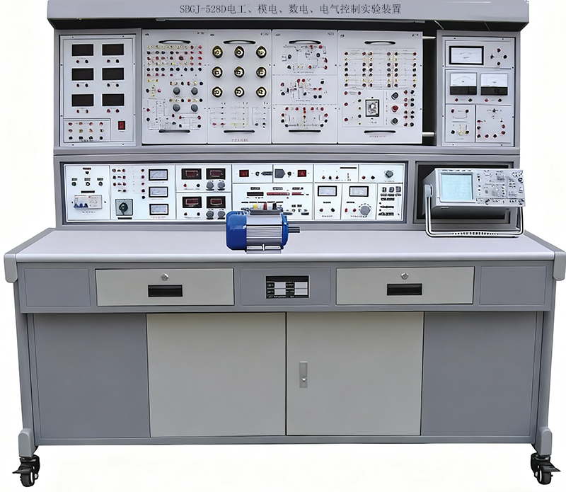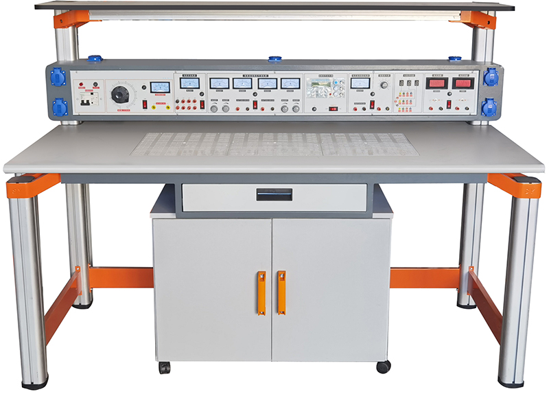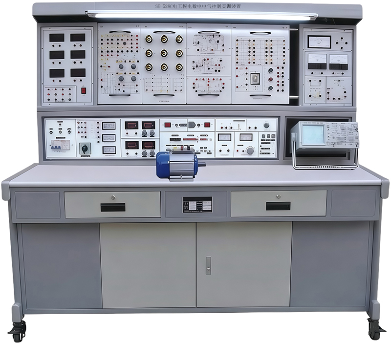 模電數(shù)電實(shí)驗(yàn)實(shí)訓(xùn)設(shè)備,模電數(shù)電實(shí)驗(yàn)實(shí)訓(xùn)平臺(tái),模電數(shù)電實(shí)訓(xùn)室設(shè)備具有較完善的安全保護(hù)措施,較齊全的功能。實(shí)驗(yàn)操作桌中央配有通用電路插扳,電路插板注塑而成,表面均布有九孔成一組相互聯(lián)通的插孔,元件盒在其上任意拼插成實(shí)驗(yàn)電路;元件盒盒體透明,直觀性好,盒蓋印有永不褪色元件符號(hào),線條清晰美觀。盒體與盒蓋采用較科學(xué)的壓卡式結(jié)構(gòu),維修、更換元件拆裝方便。元器件放置在實(shí)驗(yàn)操作桌下邊左右柜內(nèi),實(shí)驗(yàn)時(shí)取存方便,大大提高了管理水平,大大減輕了教師實(shí)驗(yàn)準(zhǔn)備工作。模電數(shù)電實(shí)訓(xùn)室設(shè)備可完成電工學(xué)、電工原理、電路分析、模擬電子技術(shù)、數(shù)字電路,電氣控制設(shè)備等課程實(shí)驗(yàn),是高職、中職、技校、職業(yè)學(xué)校理想實(shí)驗(yàn)室設(shè)備。