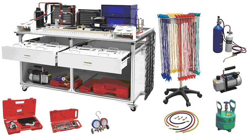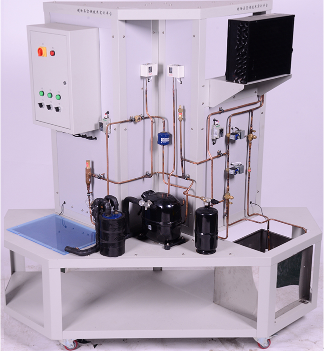 制冷制熱實訓設(shè)備,制冷制熱實驗臺,空調(diào)實訓臺,制冷制熱實訓室是根據(jù)《教育行業(yè)標準-電子技術(shù)應(yīng)用專業(yè)儀器設(shè)備配備標準》勞動和社會保障部發(fā)布的《家用電子產(chǎn)品維修工職業(yè)技能實訓和鑒定設(shè)備技術(shù)規(guī)范》制冷制熱實訓要求而研制的,制冷與制熱實訓臺適合高職院校、中職學校的應(yīng)用電子技術(shù)、家用電器維修、電子電器應(yīng)用與維修專業(yè)等專業(yè)的家用電子產(chǎn)品原理與維修的實訓與教學。