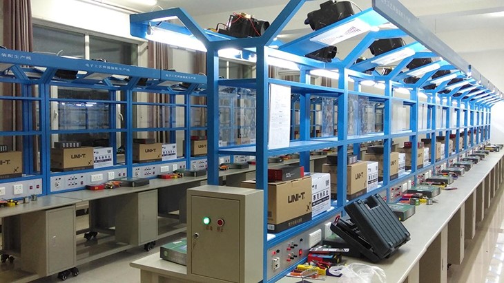 電子工藝實(shí)習(xí)室是供學(xué)生焊接練習(xí)、電子產(chǎn)品組裝調(diào)試操作的實(shí)驗(yàn)室,學(xué)生進(jìn)行焊接操作。配備的儀器設(shè)備主要有直流穩(wěn)壓電源、示波器、萬(wàn)用表、工具箱等。為了改善實(shí)習(xí)室的空氣環(huán)境衛(wèi)生,還專門配備了抽風(fēng)系統(tǒng)。開(kāi)設(shè)的課程有《電子工藝實(shí)習(xí)》、《電工實(shí)習(xí)》,包括電路元件的選配、電子產(chǎn)品的安裝、焊接和性能測(cè)試等環(huán)節(jié)。電子工藝實(shí)驗(yàn)實(shí)訓(xùn)室設(shè)備主要面向汽車、機(jī)械、電信、電氣、計(jì)算機(jī)、經(jīng)濟(jì)、管理等學(xué)院的學(xué)生,培養(yǎng)學(xué)生的動(dòng)手實(shí)踐能力、分析問(wèn)題和解決問(wèn)題的能力以及創(chuàng)新精神。