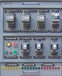 掛箱上裝有螺旋式熔斷器、直插式熔斷器、低壓斷路器、時(shí)間繼電器、交流接觸器、接線端子和安全插座等。