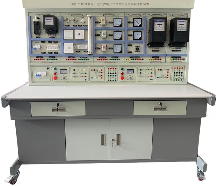 電氣教學(xué)實(shí)訓(xùn)實(shí)驗(yàn)臺(tái)、《電氣工程實(shí)驗(yàn)實(shí)訓(xùn)臺(tái)》是電氣工程及其自動(dòng)化專業(yè)學(xué)生的一門核心專業(yè)實(shí)踐課程。通過(guò)實(shí)訓(xùn),使學(xué)生系統(tǒng)掌握常用電工工具、電工儀器儀表的使用,初步具備常用高低壓電器的安裝與維修、基本電氣控制電路的設(shè)計(jì)、安裝、調(diào)試和排除故障能力,獲得PLC控制方面的基本訓(xùn)練,培養(yǎng)學(xué)生動(dòng)手能力、獨(dú)立分析和解決一般技術(shù)問(wèn)題的能力、團(tuán)隊(duì)協(xié)作的意識(shí)和實(shí)事求是的工作態(tài)度,為以后從事本專業(yè)的工作打下基礎(chǔ)。