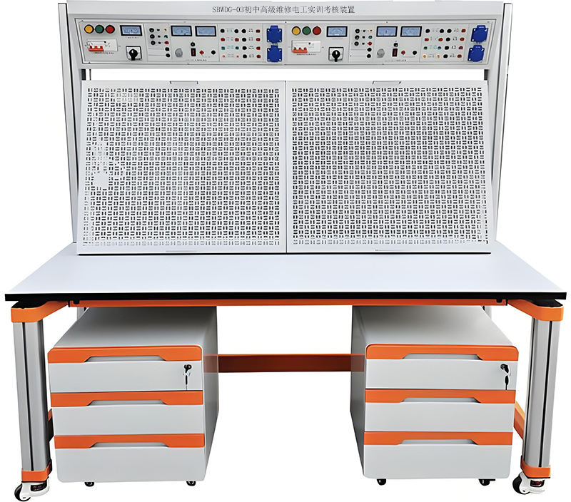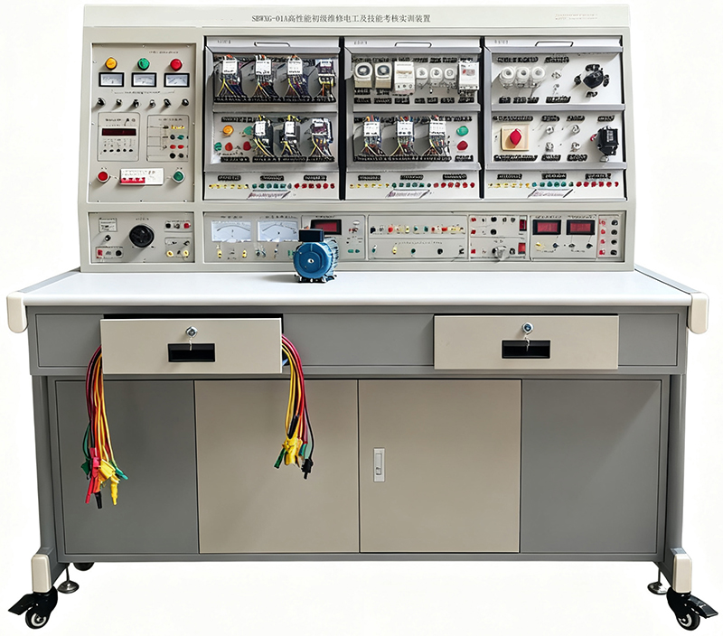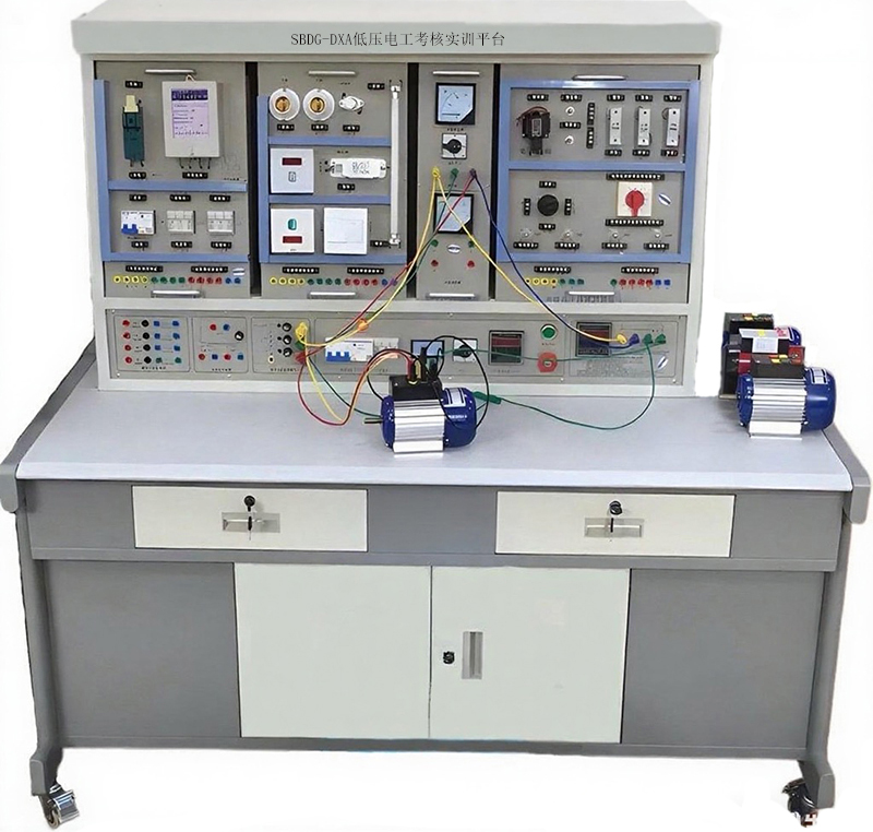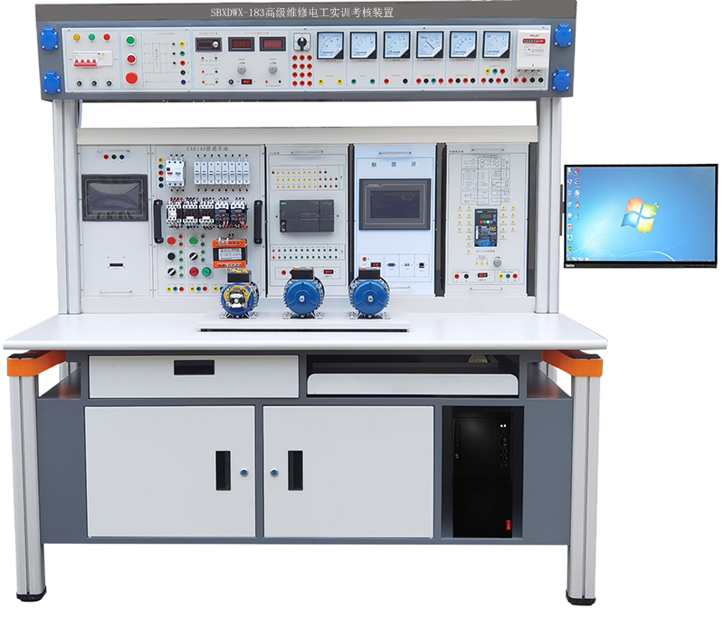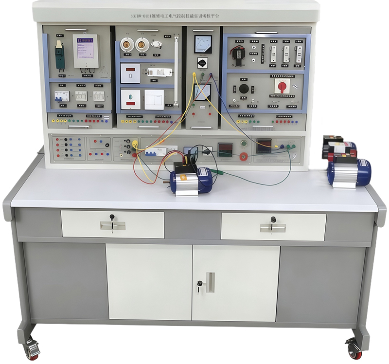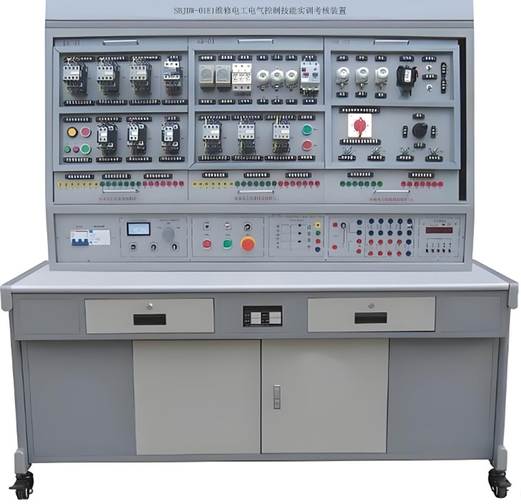 維修電工實訓(xùn)設(shè)備,維修電工實訓(xùn)臺,維修電工實訓(xùn)考核裝置適合高等職業(yè)學(xué)校、中職業(yè)學(xué)校的機電設(shè)備安裝與維修、機電技術(shù)應(yīng)用、電氣運行與控制、電氣技術(shù)應(yīng)用、電子電器應(yīng)用與維修等專業(yè)技術(shù)等課程和非機電類專業(yè)的必修課程模塊或選修課程模塊《電機控制電路的教學(xué)與實訓(xùn)及從事機械設(shè)備和電氣系統(tǒng)線路及器件的安裝、調(diào)試與維護及維修電工修理人員。維修電工實訓(xùn)設(shè)備主要掌握,維修電工常識和基本技能,維修電工室內(nèi)線路的安裝,接地裝置的安裝與維修,常見變壓器的檢修與維護,各種常用電機的拆裝與維修,常用低壓電器及配電裝置的安裝與維修,電動機基本控制線路的安裝與維修,常用機床電氣線路的安裝與維修,電子線路的安裝與調(diào)試,電氣控制線路設(shè)計,可編程控制器及其應(yīng)用。