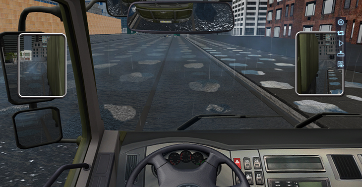模擬器右邊10寸觸摸屏: 確定、返回、上下左右功能鍵選擇,車內(nèi)和車外景切換。
