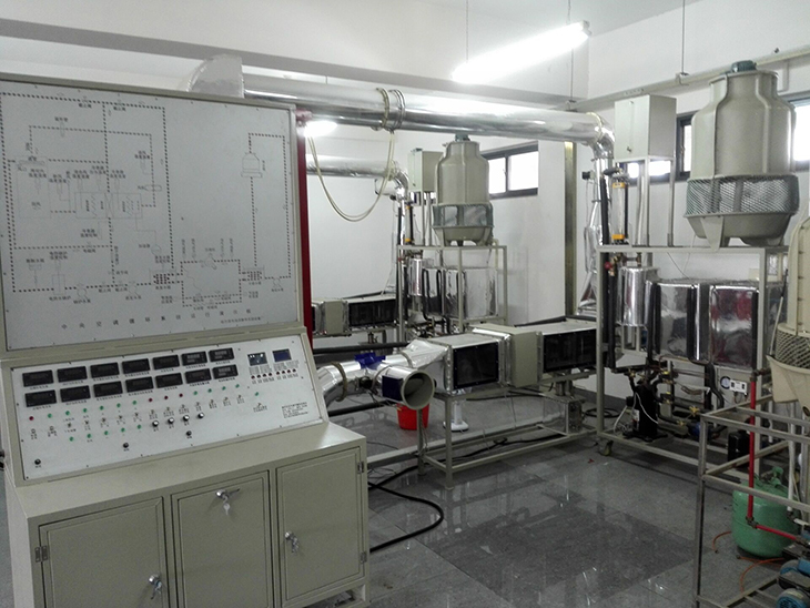 (1)具有蒸汽壓縮式集中式和半集中式中央空調(diào)系統(tǒng)的功能,主要由冷源系統(tǒng)、熱源系統(tǒng)、空氣處理及配送系統(tǒng)及控制與顯示系統(tǒng)等組成?蓾M足學(xué)校既能開出驗證性實驗,也可以開設(shè)故障設(shè)置性實驗滿足畢業(yè)設(shè)計、教師科研、創(chuàng)新實驗室所需,能實現(xiàn)一機(jī)多用。