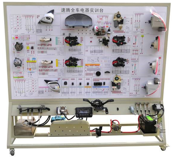 該設(shè)備采用 全新 大眾速騰1.6L 整車電器實物為基礎(chǔ),充分展示汽車發(fā)動機防盜系統(tǒng)、儀表系統(tǒng)、燈光系統(tǒng)、雨刮系統(tǒng)、喇叭系統(tǒng)、點火系統(tǒng)、電動車窗系統(tǒng)、電動門鎖、音響系統(tǒng)、起動系統(tǒng)和充電系統(tǒng)等汽車電器各系統(tǒng)的組成結(jié)構(gòu)和工作過程。