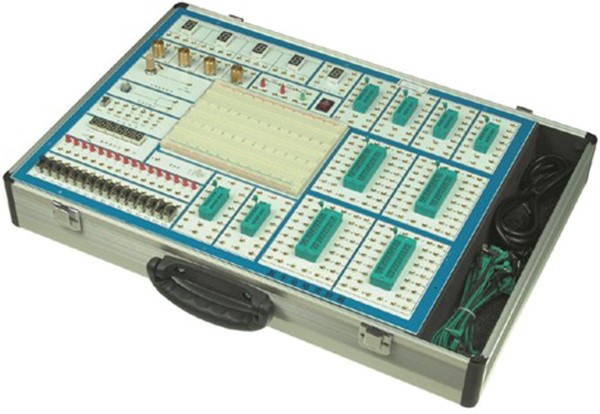 數(shù)字電路基礎(chǔ)實驗室設(shè)備緊跟社會科技的發(fā)展,實驗設(shè)備更新,本實驗室配置有IC測試儀、雙蹤示波器,數(shù)字電路實驗箱。數(shù)字電路實驗箱集合了低頻函數(shù)信號發(fā)生器、單次脈沖、連續(xù)脈沖、直流穩(wěn)壓電源、電位器、數(shù)字邏輯開關(guān)、數(shù)字邏輯電平輸出顯示、撥盤開關(guān)、數(shù)碼管顯示、可調(diào)電壓源、面包板、集成塊插座、電位器、電容等部件,可提供能強、全、靈活、可靠的實驗項目。